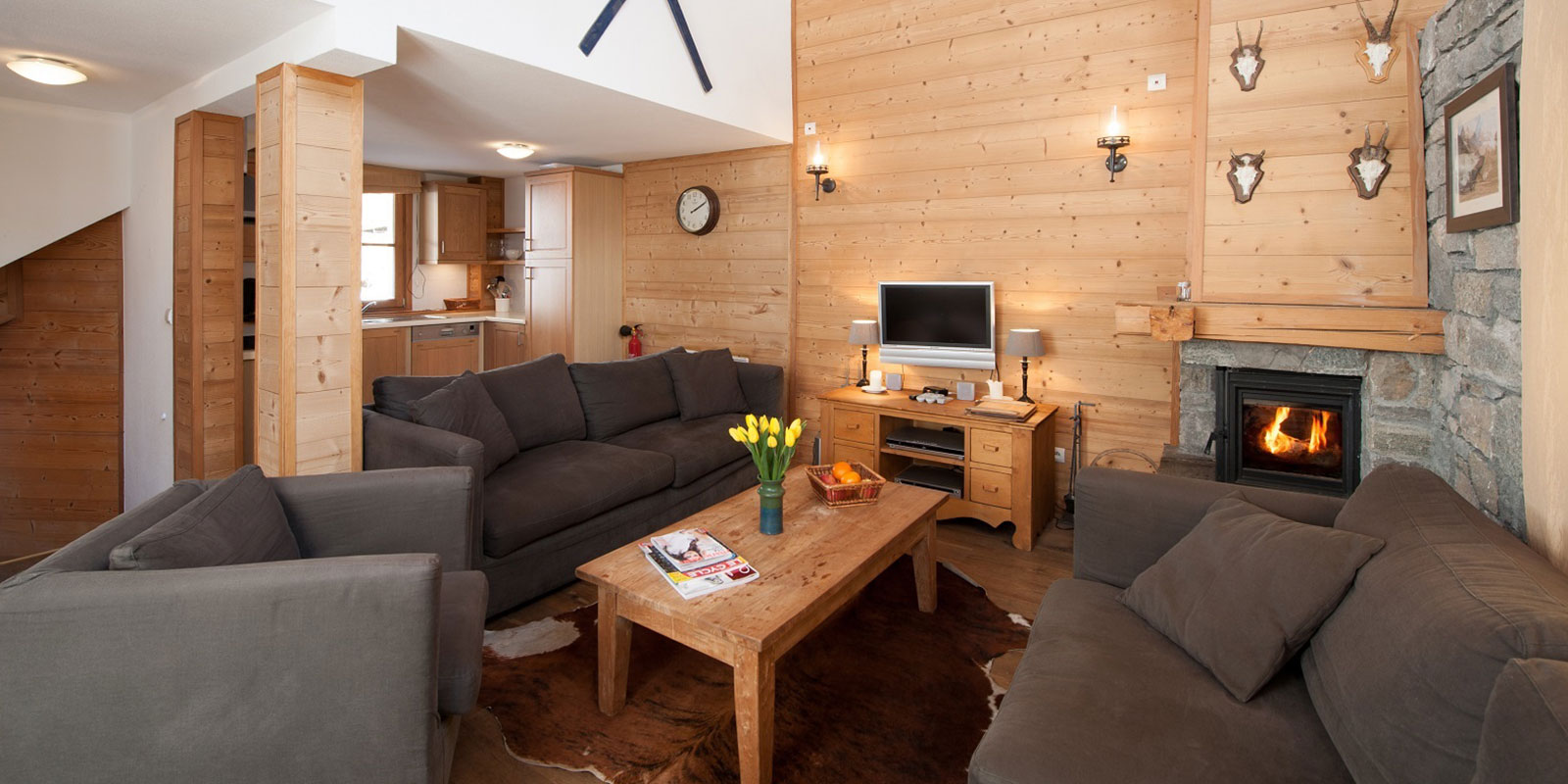 There is a feeling of space and light, with sunny terraces offering stunning views of the surrounding mountains and ski slopes.