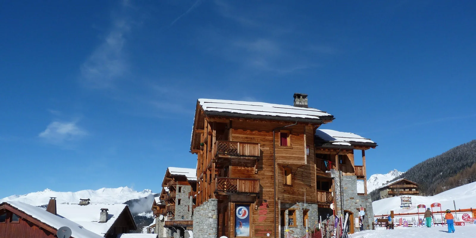 It is situated on the second floor of the Balcons de Sainte Foy and has a sunny south/south-west facing wrap-around balcony offering views of the nursery slope, and Mont Pourri and Aiguille Rouge mountains.